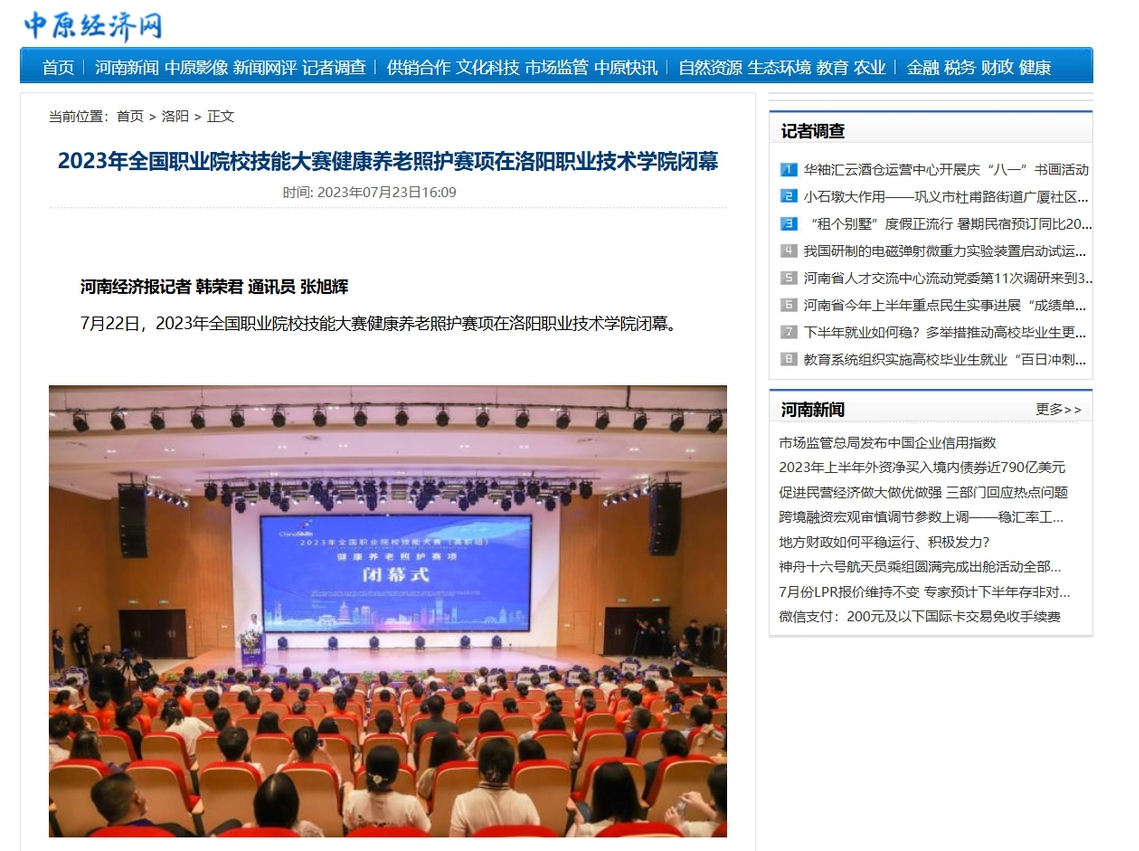 中国日报网:2023医疗护理员职业技能大赛社会康养机构赛道全国选拔赛在洛阳举行