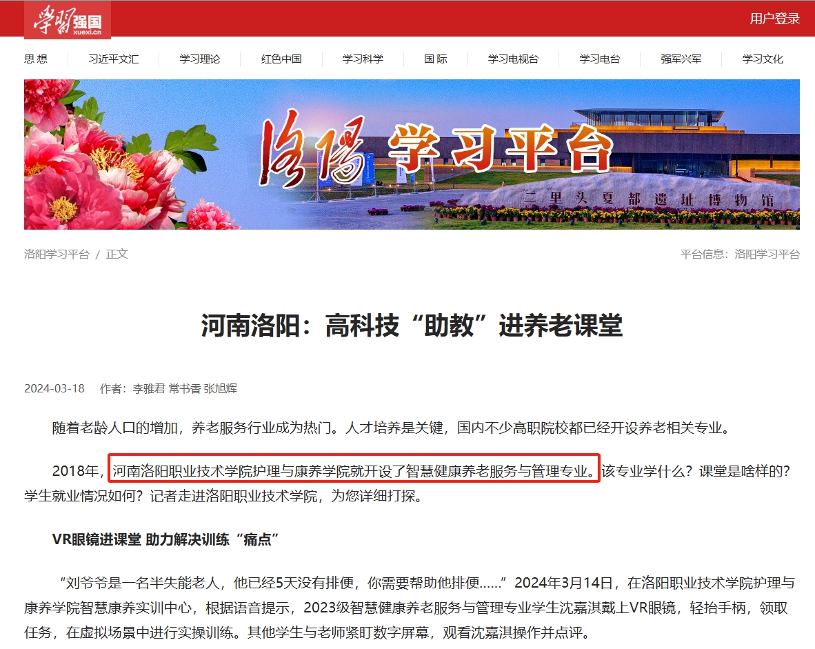 学习强国:河南洛阳:高科技“助教”进养老课堂
