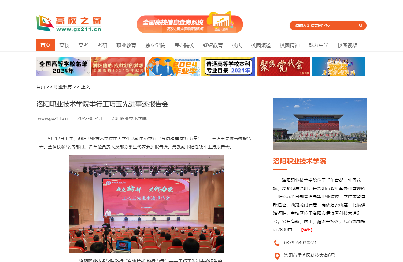 高校之窗:洛阳职业技术学院举行王巧玉先进事迹报告会