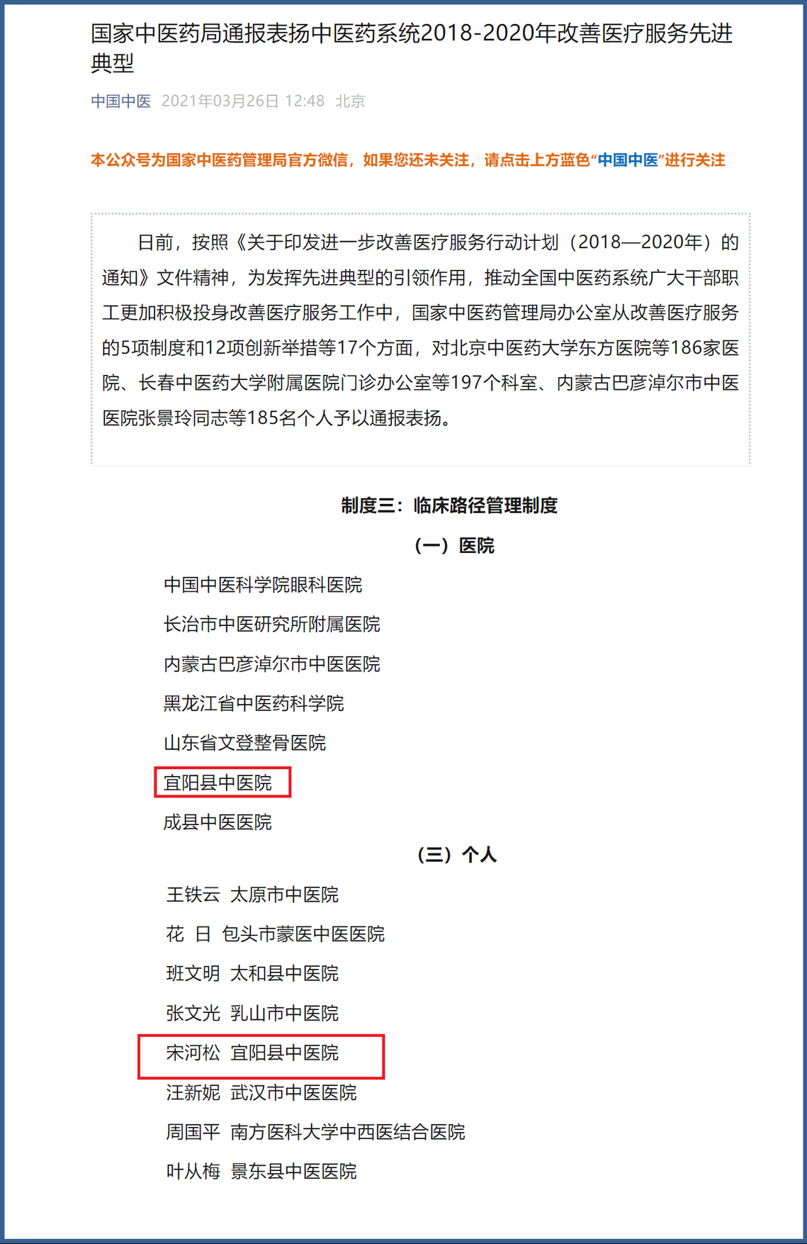 中国中医网报道:国家中医药局通报表扬中医药系统2018-2020年改善医疗服务先进典型